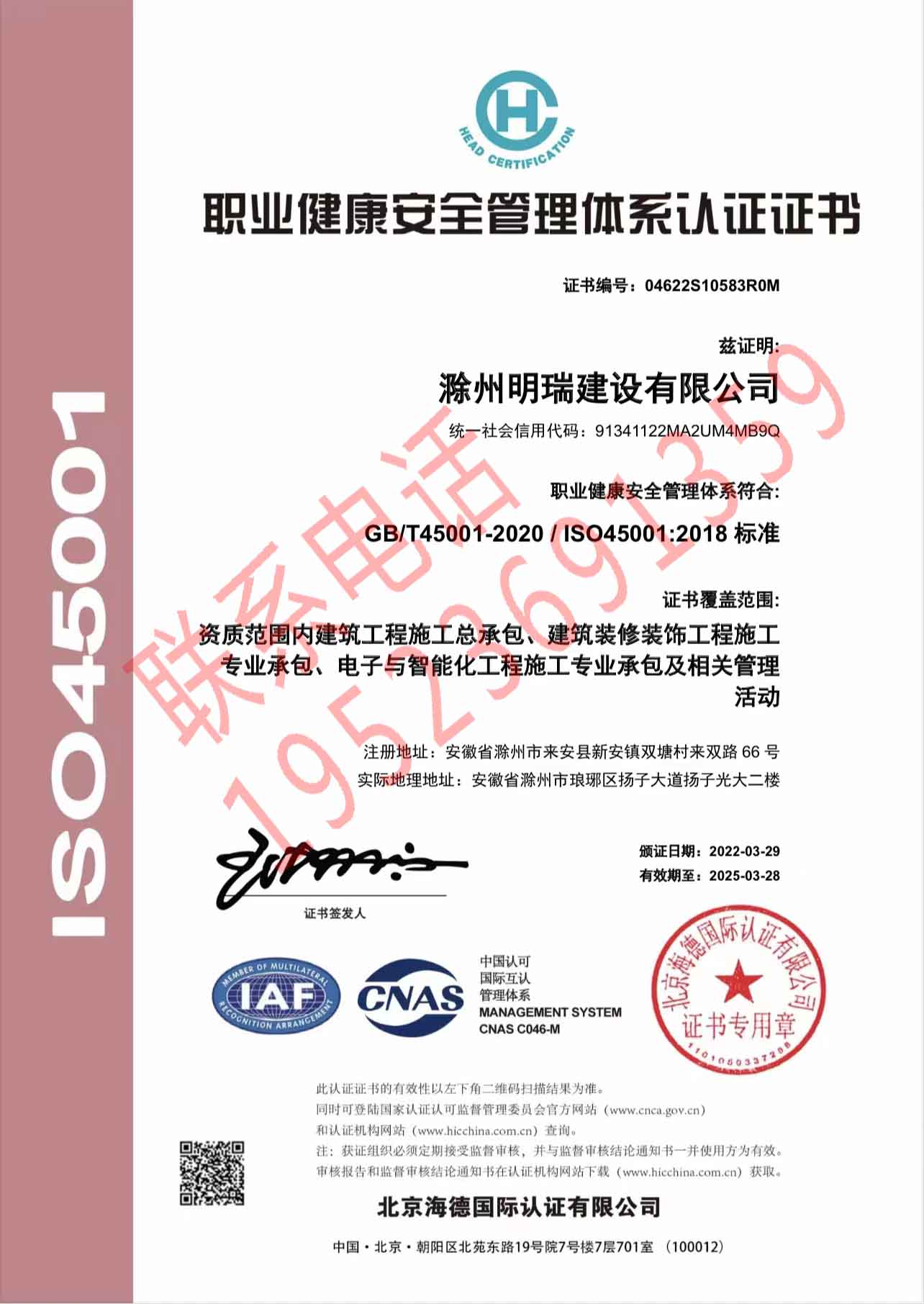 恭喜滁州明瑞建設有限公司獲得ISO三體系認證