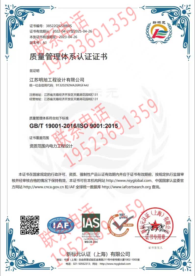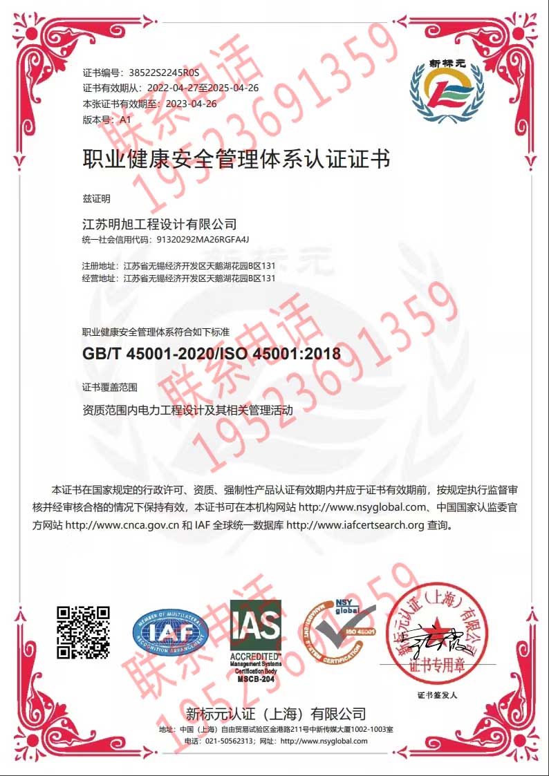 恭喜江蘇明旭工程設計有限公司獲得ISO三體系認證證書