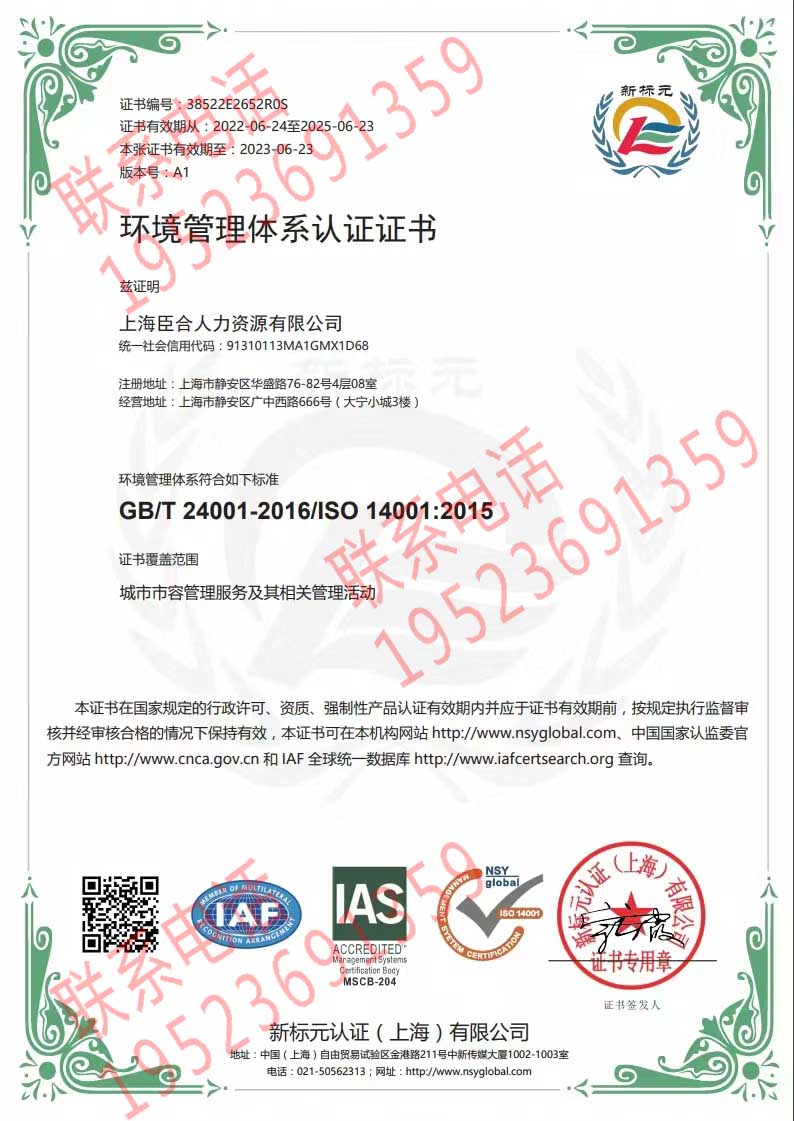 恭喜上海臣合人力資源有限公司獲得ISO三體系認(rèn)證證書(shū)
